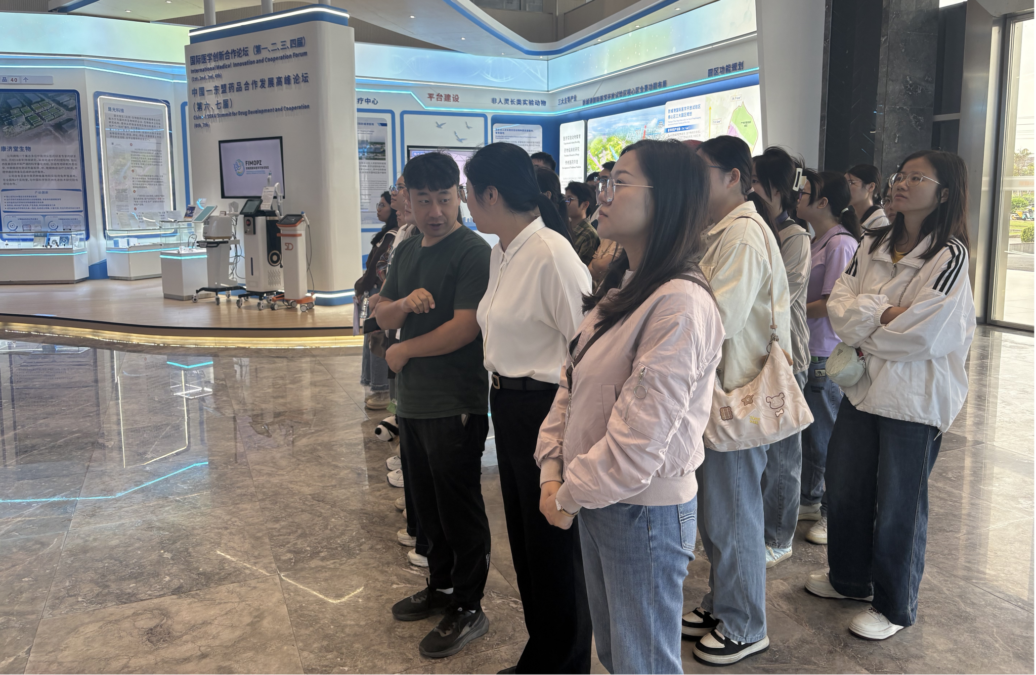 防城港医学试验区工作办首席专家廖文艳和产业发展部部长覃任接待了我院师生的来访。在医学创新赋能中心展厅观看了宣传片,讲解员对医学试验区的发展及园区入驻公司情况进行一一介绍,让学生们对相关企业有了初步的认识和了解。