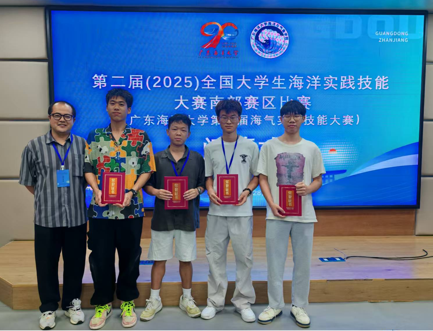 2025年9月28日,第二届(2025)全国大学生海洋实践技能大赛南部赛区分赛在广东海洋大学圆满落幕。本次大赛是在教育部高等学校海洋科学类专业教学指导委员会的指导下,由虚拟仿真实验教学创新联盟海洋科学类工作委员会、中国海洋大学、广东海洋大学和天津科技大学联合主办,其中南部赛区由广东海洋大学主办。我院应用气象学专业本科生组成参赛团队(志恒队),凭借扎实的专业功底、出色的实践能力和稳定的临场发挥,荣获团体三等奖。本届大赛吸引了南部赛区多所涉海高校的优秀队伍同台竞技,竞赛内容紧密结合海洋调查、仪器应用与数据分析等实际应用场景,全面考察学生的理论素养、动手能力、创新思维和团队协作精神。