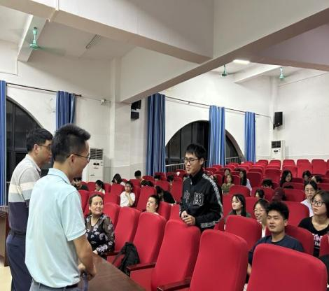 宣讲会由海洋学院副院长陈振华主持。他简要介绍了华南农业大学的学科实力及合作背景,并对甘炼教授的到来表示欢迎。甘炼院长从学科建设、人才培养模式、校企合作机制及研究生招生政策等方面展开讲解,特别指出:“北部湾大学海洋学院的学生专业基础扎实,是华南农业大学海洋学院的优质生源,欢迎同学们积极报考,进一步提升科研创新能力。”