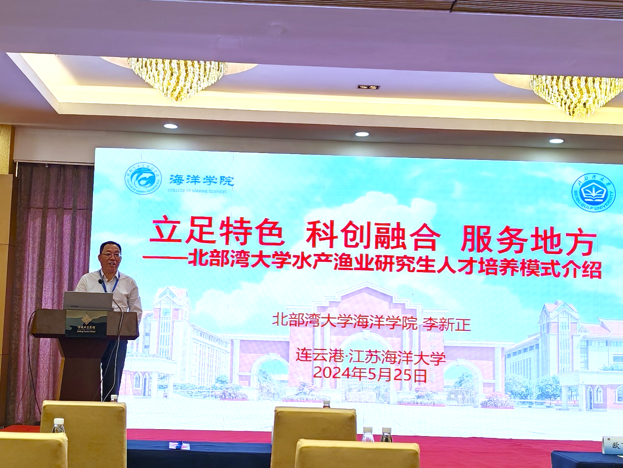 北部湾大学副校长尹艳镇、研究生院院长刘琼、海洋学院院长李新正、副院长陈振华等一行6人出席会议。尹艳镇在会上介绍了北部湾大学的基本情况,并邀请各高校参加将于明年在我校举办的水产渔业协作组2025年学术年会。海洋学院院长李新正在会上做了题为“立足特色、科创融合、服务地方——北部湾大学水产渔业研究生人才培养模式介绍”的主题报告,介绍了北部湾大学的区域优势及我校水产渔业研究生人才培养的经验和成果。会后,参会人员参观了江苏省东辛农场,开展访企拓岗活动,深入了解行业前沿和企业需求。