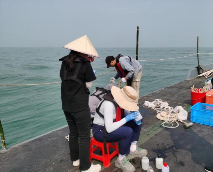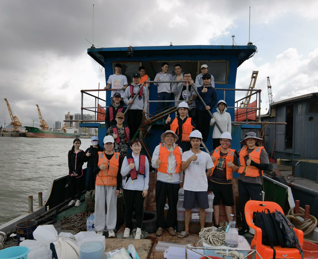 该调查分别由北部湾大学柔性引进人员科研启动经费、国家自然科学基金、广西科技项目等资助,也搭载了北部湾大学海洋科学广西一流学科 2024 年度卓越学生人才培养计划项目、广西北部湾海洋环境与灾害重点实验室调查项目等。其主要目标是通过连续两年的现状调查并结合历史调查数据,查清钦州湾及周边海域生态系统的群落结构及环境现状,为分析北部湾北部海洋生态系统在气候变化和人类活动双重影响下的长期变化规律研究提供基础现状数据,同时也为平陆运河开通后的钦州湾海域海洋生态系统跟踪调查提供零点调查参照数据。调查内容包括大型底栖生物群落结构和生物多样性特征、浮游生物群落特征、水文特征、沉积物环境要素特征、水体和沉积物污染物特征等。参加本航次调查的队员包括来自北部湾大学海洋学院的海洋科学专业和渔业发展专业的本科生、研究生和相关项目的教师,平陆运河野外观测站成员,以及中国科学院海洋研究所和烟台海岸带研究所、浙江理工大学的博士研究生、硕士研究生和科技人员。