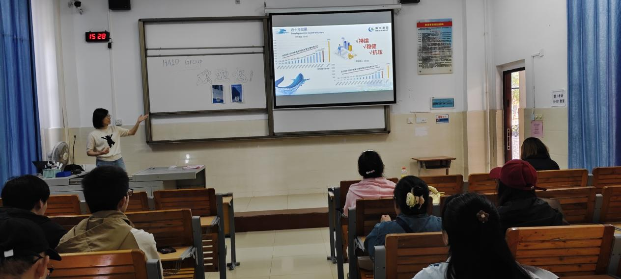 3月24日下午15时,海兴农集团校园宣讲会在北部湾大学14号教学楼112教室成功举办。本次宣讲会吸引了水产养殖学、海洋科学、生物制药等相关专业四十多名毕业生参加。