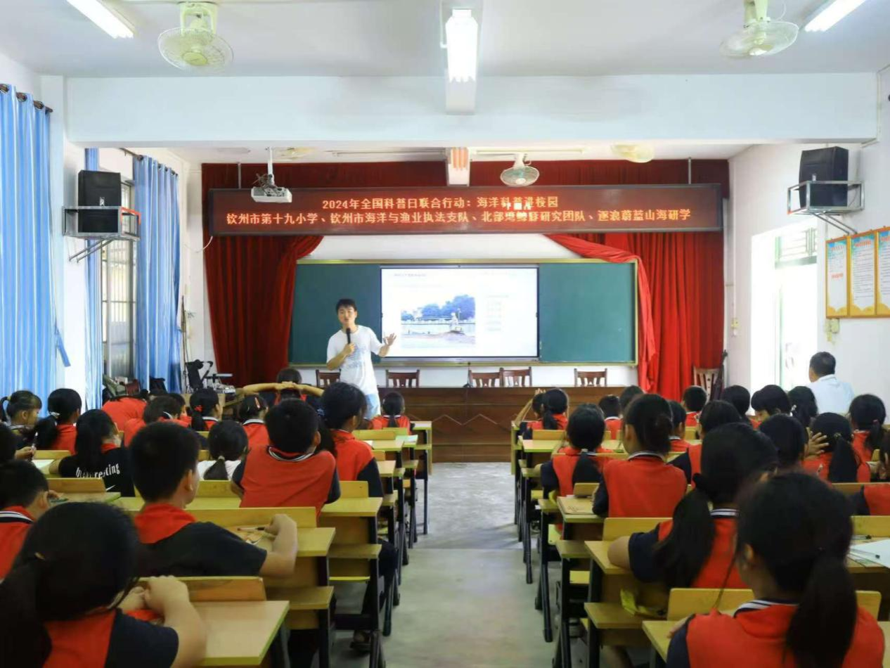 2024年9月20日上午,一场别开生面的“海洋科普进校园”活动在钦州市第十九小学会议室成功举办。本次活动由北部湾大学海洋学院益科课堂志愿服务队、北部湾鲸豚研究团队、钦州市海洋与渔业执法支队、逐浪蔚蓝山海研学等单位联合承办。