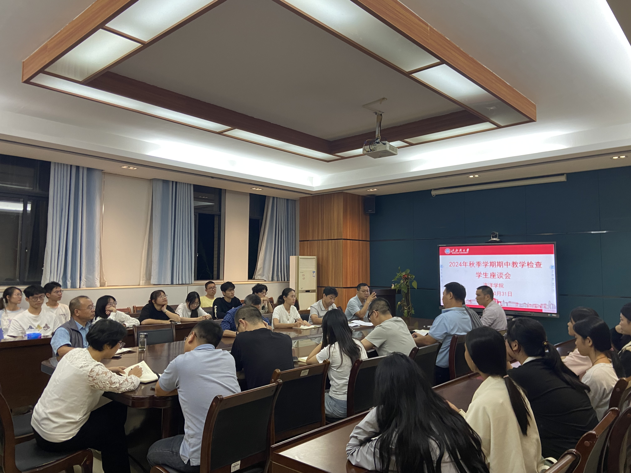 2024年10月31日,海洋学院在7A-229会议室召开2024年秋季学期学生座谈会,学院领导班子、教学督导、教研室主任及副主任、学生代表出席座谈会。