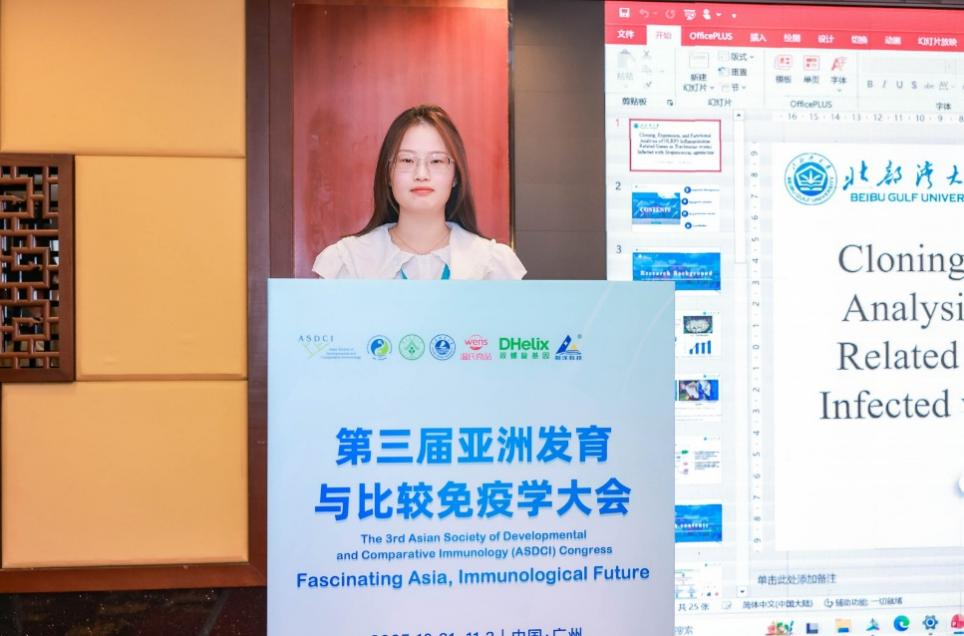 第三届亚洲发育与比较免疫学大会于2025年10月31日-11月3日在广东广州成功召开,我校水生动物病害与疾病免疫研究团队蔡小辉研究员、陈建安副研究员以及研究生胡硕、林政静、刘名等5人参加了此次会议。
