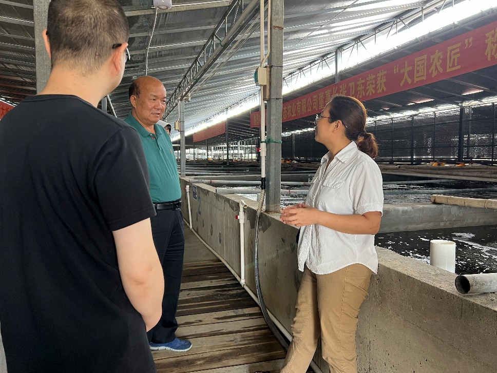 2024年5月22日,海洋学院水产养殖学教研室主任蔡小辉和副主任胥鹏赴广西港河生态农业有限公司对本科生养殖生产实习实践进行实地调研。广西港河生态农业有限公司执行董事张卫东、科技人员张卫国等与调研团队进行深入交流沟通和分享。