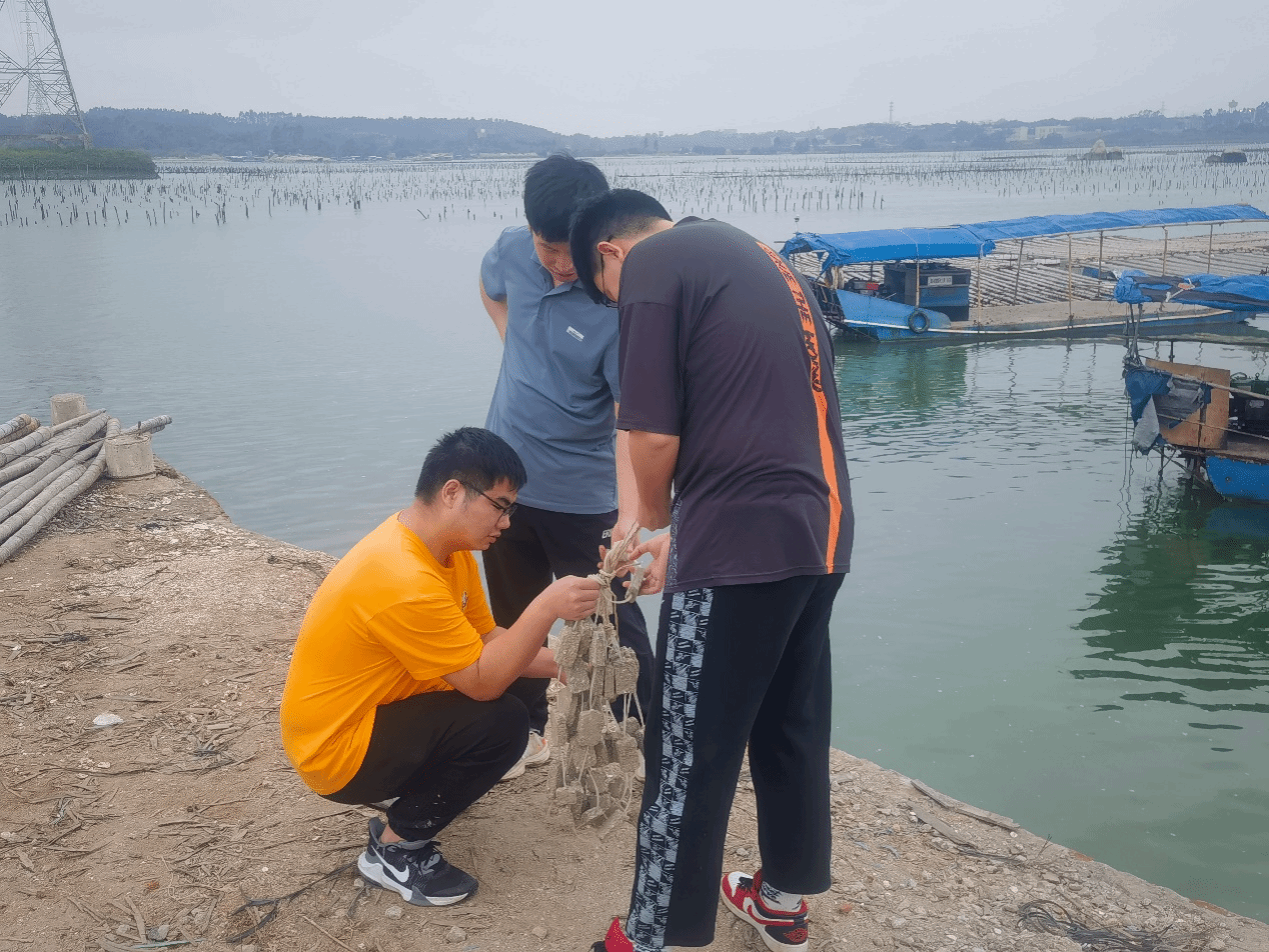 佘智彩副教授与团队成员到湛江坡头区大蚝养殖现场调研