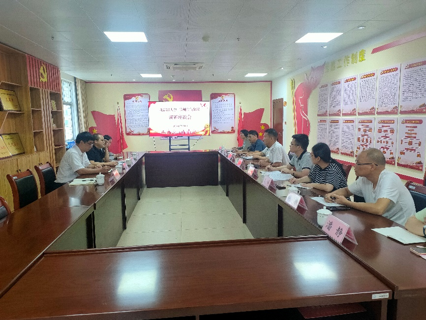 钦州市气象局朱静海副局长从部门组成、气象预报业务和气象服务等方面介绍了钦州市气象局工作概况。海洋学院陈振华副院长从办学定位、培养目标、教学科研等方面介绍了北部湾大学和海洋学院基本情况,并表达了此行调研来意;张超主任从专业申请、专业定位和办学方向等方面介绍了应用气象学专业学科建设基本情况。