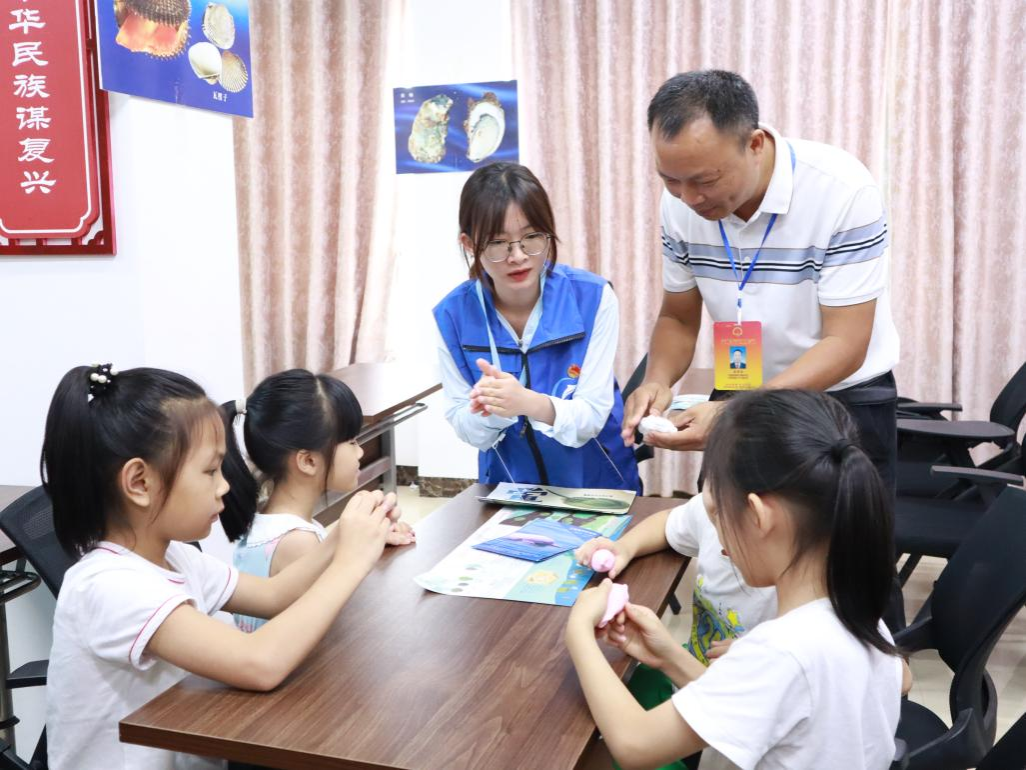 服务团成员给易地扶贫安置小区的30余名小朋友科普海洋生物