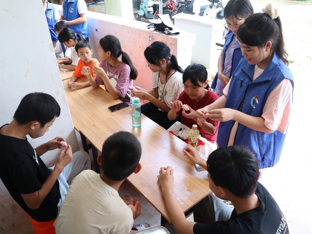 服务团成员带领易地扶贫安置小区的30余名小朋友们做手工