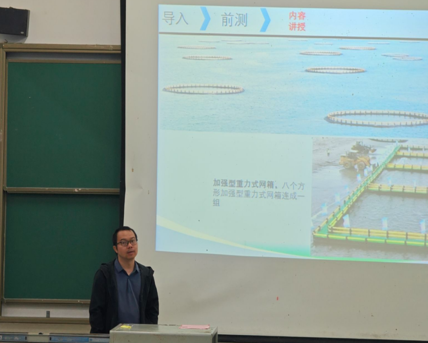 讲座中,朱鹏教授详细介绍了钦北防地区的海洋生态环境、海洋资源开发与保护、海洋灾害防治等方面的知识,特别是对钦北防的海面高度及所适用的网箱进行了深入讲解,通过对网箱的发展历程和详实的数据对比,帮助同学们深刻认识海洋对于人类的重要性、保护海洋的紧迫性以及国家海洋发展的可持续性。