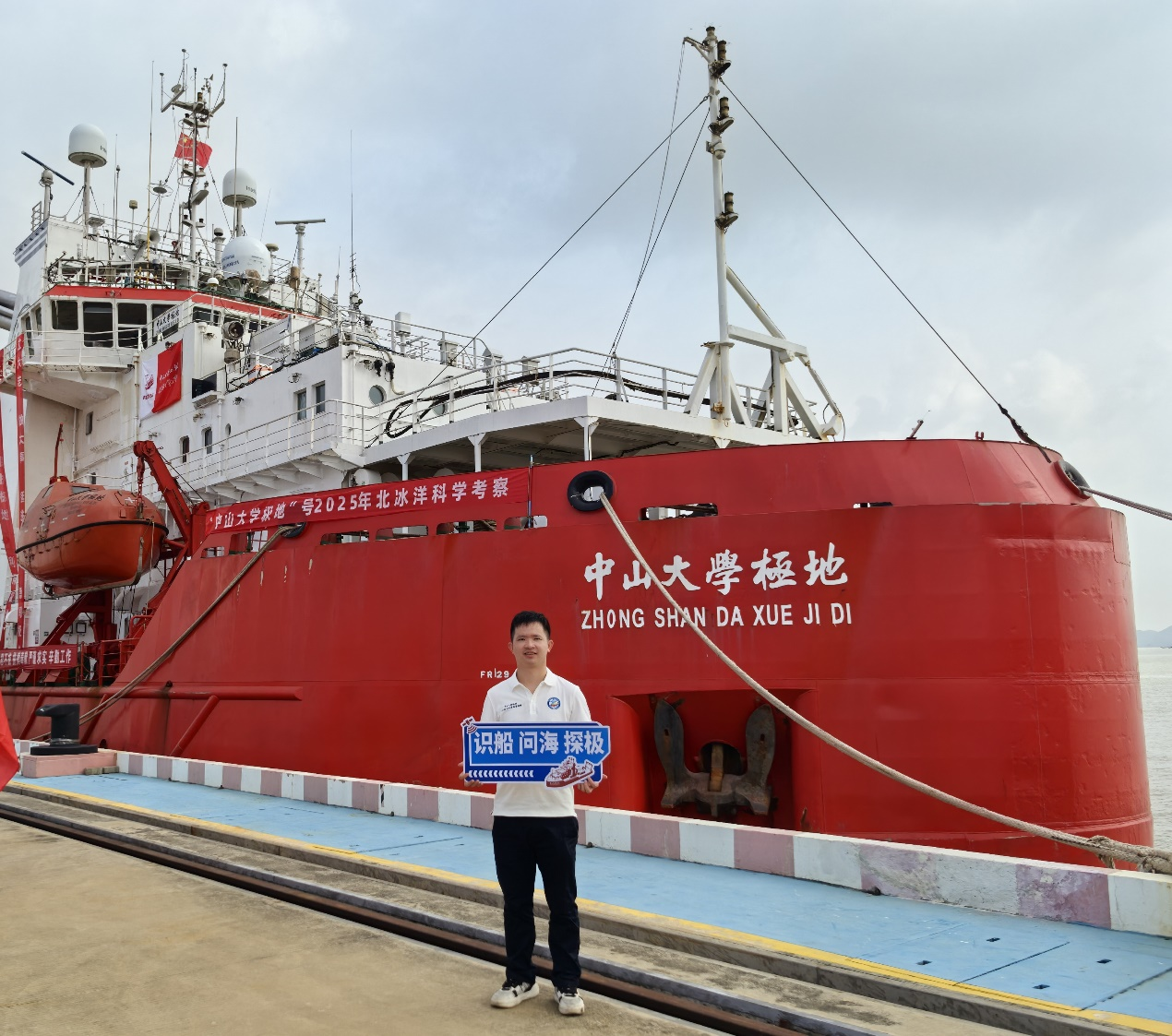陆璇与科考船留影(刘正凯 摄)