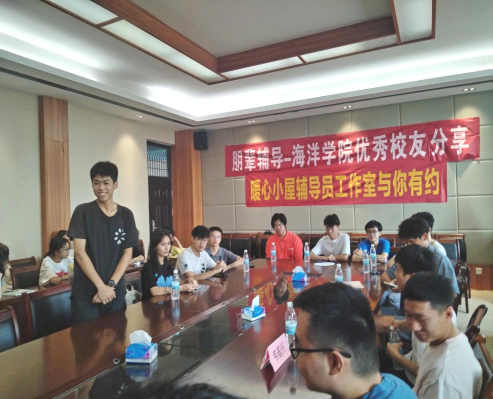 6月21日下午,海洋学院携手“暖心小屋”辅导员工作室,在7A-229会议室成功举办了“优秀校友职场经验分享座谈会”,海洋科学16级四位校友与40余名怀揣梦想的海洋学子共聚一堂,聆听他们的职场心得。